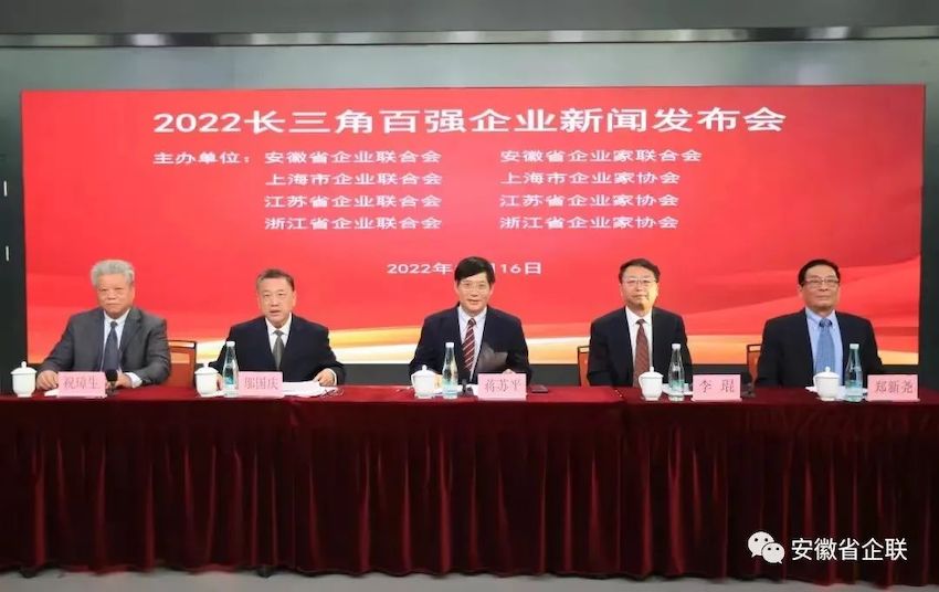 11月16日下午,由安徽省企業(yè)聯合會、安徽省企業(yè)家聯合會、上海市企業(yè)聯合會、上海市企業(yè)家協會、江蘇省企業(yè)聯合會、江蘇省企業(yè)家協會、浙江省企業(yè)聯合會和浙江省企業(yè)家協會共同主辦的2022長三角百強企業(yè)新聞發(fā)布會在上…